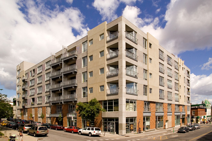 Ce bâtiments de six étages, est une ancienne usine de teinture convertie en 84 unités de condos et est situé sur le Plateau Mont-Royal. Le projet comprenait la mise à nue de la structure en vue d’installer une nouvelle façade préfabriquée en béton, des balcons, le briquelage et des baies vitrées. Ce concept de loft comprend des cuisines européennes, des plafonds de 12’-0’’ en béton et une finition haut de gamme.