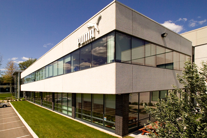 Le nouveau siège social canadien de Puma comprent 20 500 pi.ca. de bureau et un entrepôt de 90 000 pi.ca. L’entrepôt est doté de 14 quais de chargement et deux portes de garage. Les bureaux disposent d’une salle d’exposition haut de gamme, un grand escalier architectural et une mezzanine ouverte sur le lobby. Le projet a été complété en seulement trois mois et demi. |