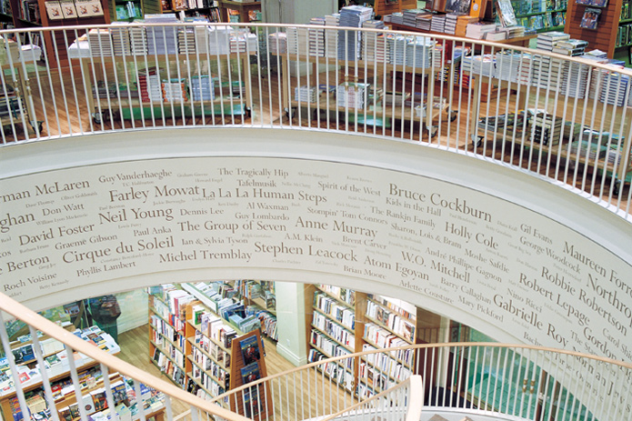 Fit-up of 30,000 sf for an airy, two-level bookstore with dramatic spiral staircase in downtown Montreal.