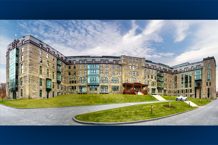 Nestled in a private forested enclave in the heart of downtown Montreal, this former convent built in 1895 was transformed into 95 ultra-high end condominiums in 2 separate buildings; the original building from 1895 and a new modern glass building on the property. The project includes 18 acres of landscaped area, imported Italian kitchens, an indoor swimming pool, and lush finish accents throughout. |