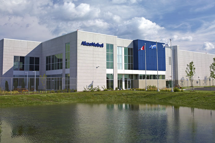 This new 203,000 sf distribution center constructed for Akzo Nobel Sico was built on a fast track basis and completed in less than 5 months. The project was submitted as a candidate for LEED certification and included a TPO roof to reduce solar heat gain and nine solar wall panels used to pre-heat fresh air for the warehouse. Shipping areas included 29 dock-level doors including hydraulic levelers and one drive-in door. |