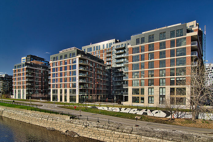 The second phase of this Griffintown project, Gallery Lofts sur le Canal 2, will feature 145 luxurious condo units over a total of 240,000 sf. Located near the Lachine Canal, two towers of 14 and 9 floors respectively will complete this concept elaborated by Geiger Huot Architects. The project is currently under construction. |