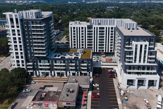 Contract Delivery : The suites range from 700 square feet to over 1200 square feet and are equipped with high end finishes and appliances. Additionally, the buildings are fully equipped with amenities including a pool, roof-top patio and lounge, party room, and a fitness room. Developed by Crombie REIT and Prince Development, this revitalization holds true to the current aesthetic and culture of the Bronte neighborhood and brings an attractive and exciting renewal to the area. |