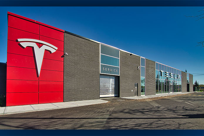 The Tesla dealership in Saint-Bruno-de-Montarville stands out with its design focused on assembly-line work and its various service stations. The dealership has 8 V3 superchargers. |