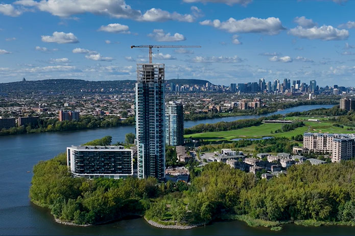 Construction of the phase 2A project comprising 46 floors including 2 floors of underground parking. The podium and garage total 68,000 square feet and each typical floor of the tower will be 9,000 square feet. The curtain wall envelope, the interior finishes of the condos including high-end engineering flooring, Miele and Bosch appliances, and Eruopean style doors, as well as the common areas including an interior pool, a sauna and a gym, all highlight the high-end status of this project. |