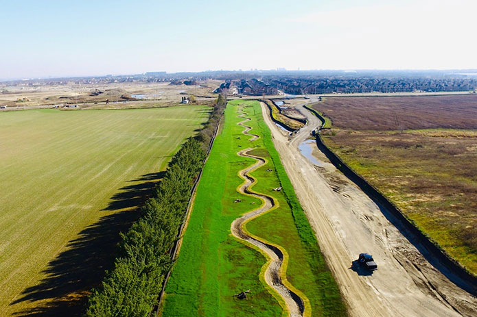 Tribal Partners purchased a piece of land which is 130 acres for industrial development. A stream runs through the property and had to be relocated for future development. Reliance was selected by Tribal to construct a new channel and complete the geomorphology of the work. |