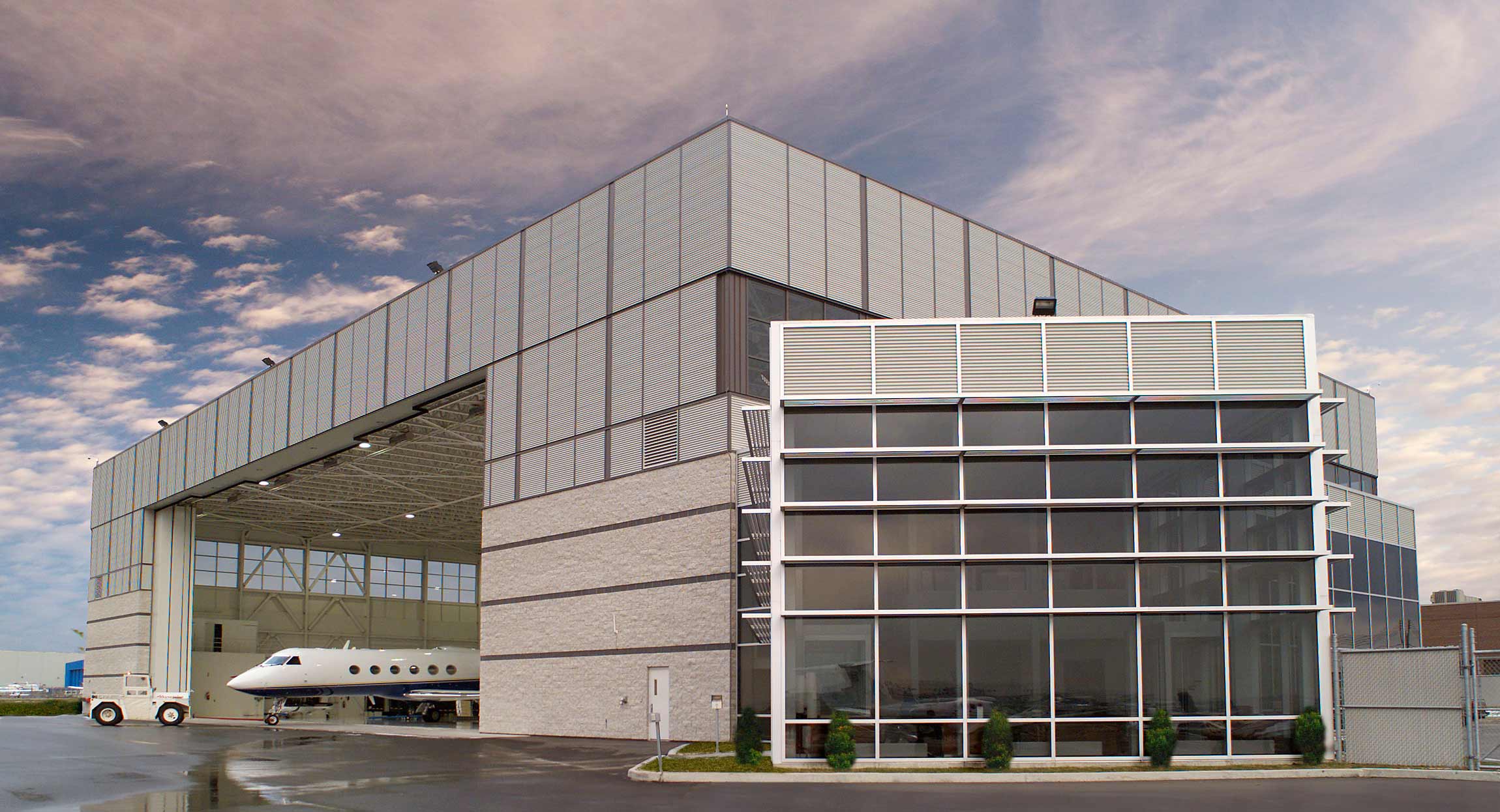 The design and construction of this private jet hanger completed by Reliance is capable of fitting two Global Express aircraft or one larger Boeing aircraft. Fire suppression requirements mandated the construction of an independent 250,000 US gallon underfloor storage water reservoir. Clearance for airplanes required a 50'-0" high clear steel structure and a 150'-0" by 45'-0" high motorized door complete with heated tracks and heated exterior concrete apron.