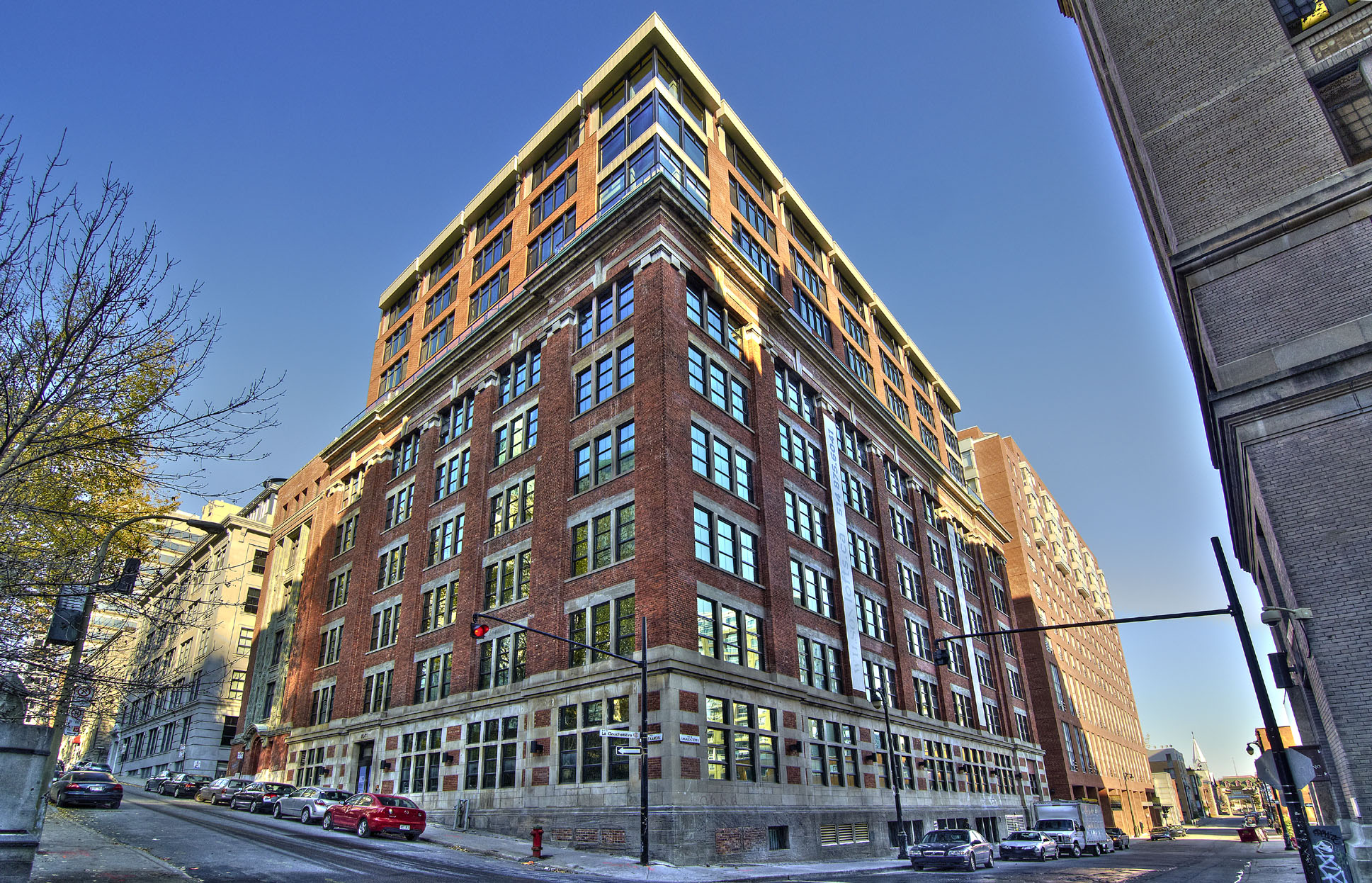 Retrofit of a 1909 paper factory into an upscale loft style condominium in downtown Montreal overlooking a park. Originally six storeys, a complete reinforcement of the existing structure was necessary to carry an additional four floors. The building houses 98 residential units with 12' 0" exposed concrete ceilings and columns, exposed brick walls, and bamboo hardwood floors. Each unit is equipped with European kitchens, appliances, and plumbing fixtures.