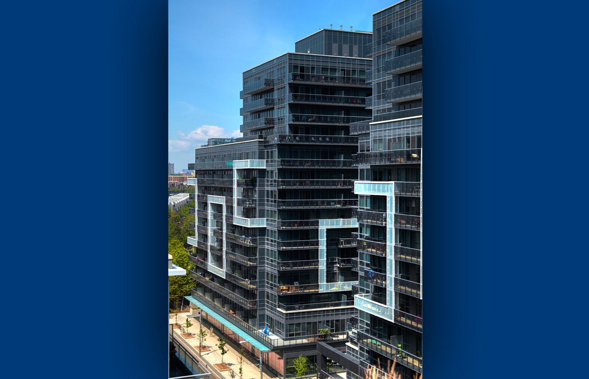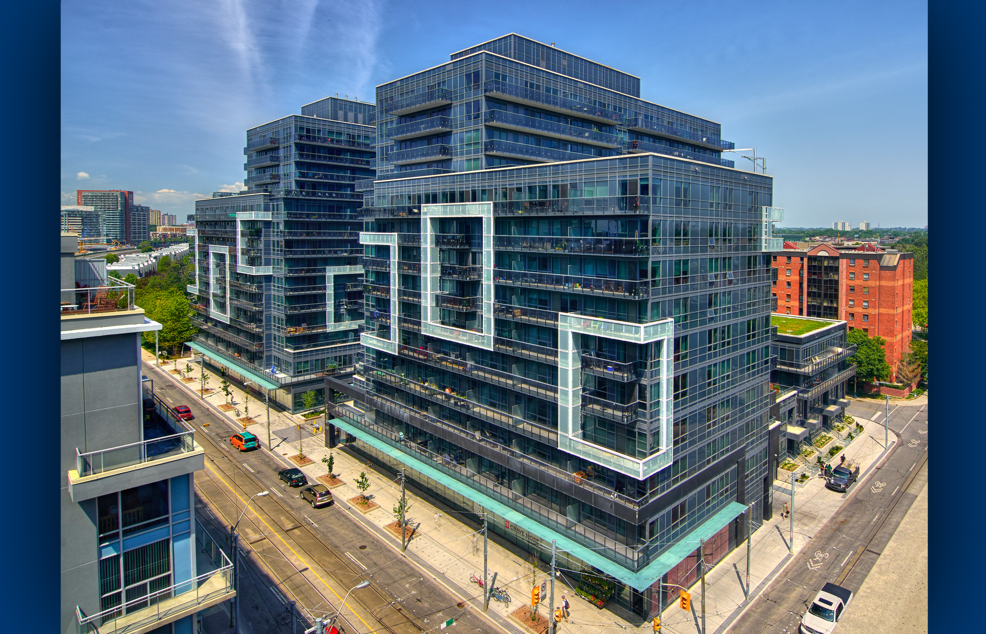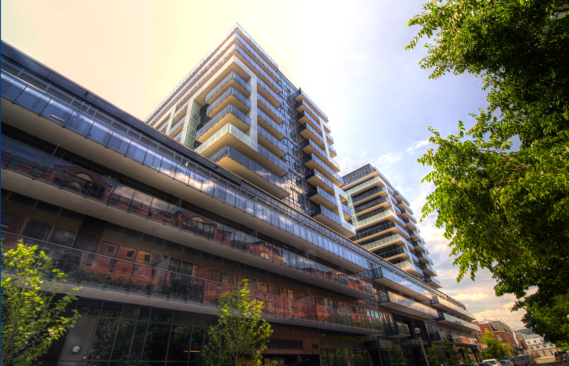 This 742,000 sf, 600-unit project includes 2 buildings joined by a retail podium, underground parking, three courtyards, rooftop terraces, and an all glass exterior facade. Units comprise nine foot ceilings, high-end finishes and spacious balconies.