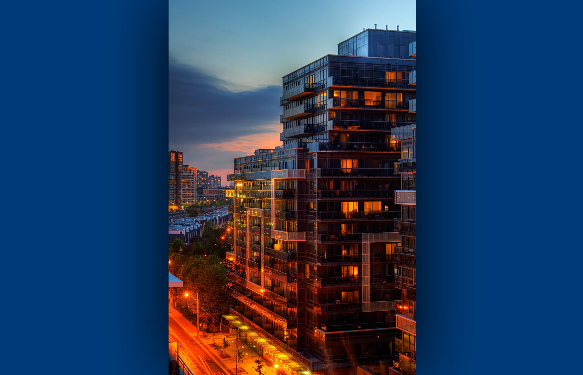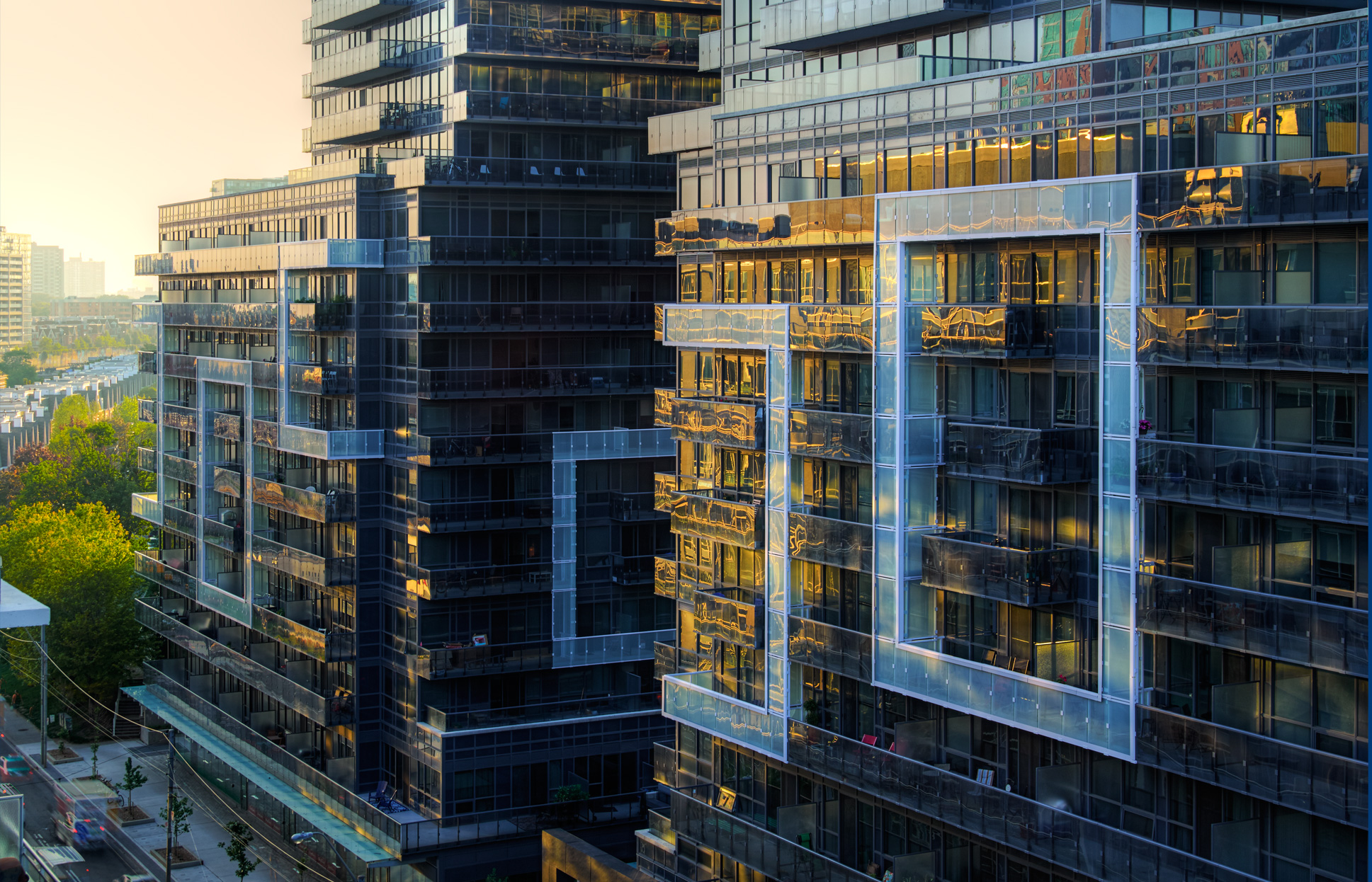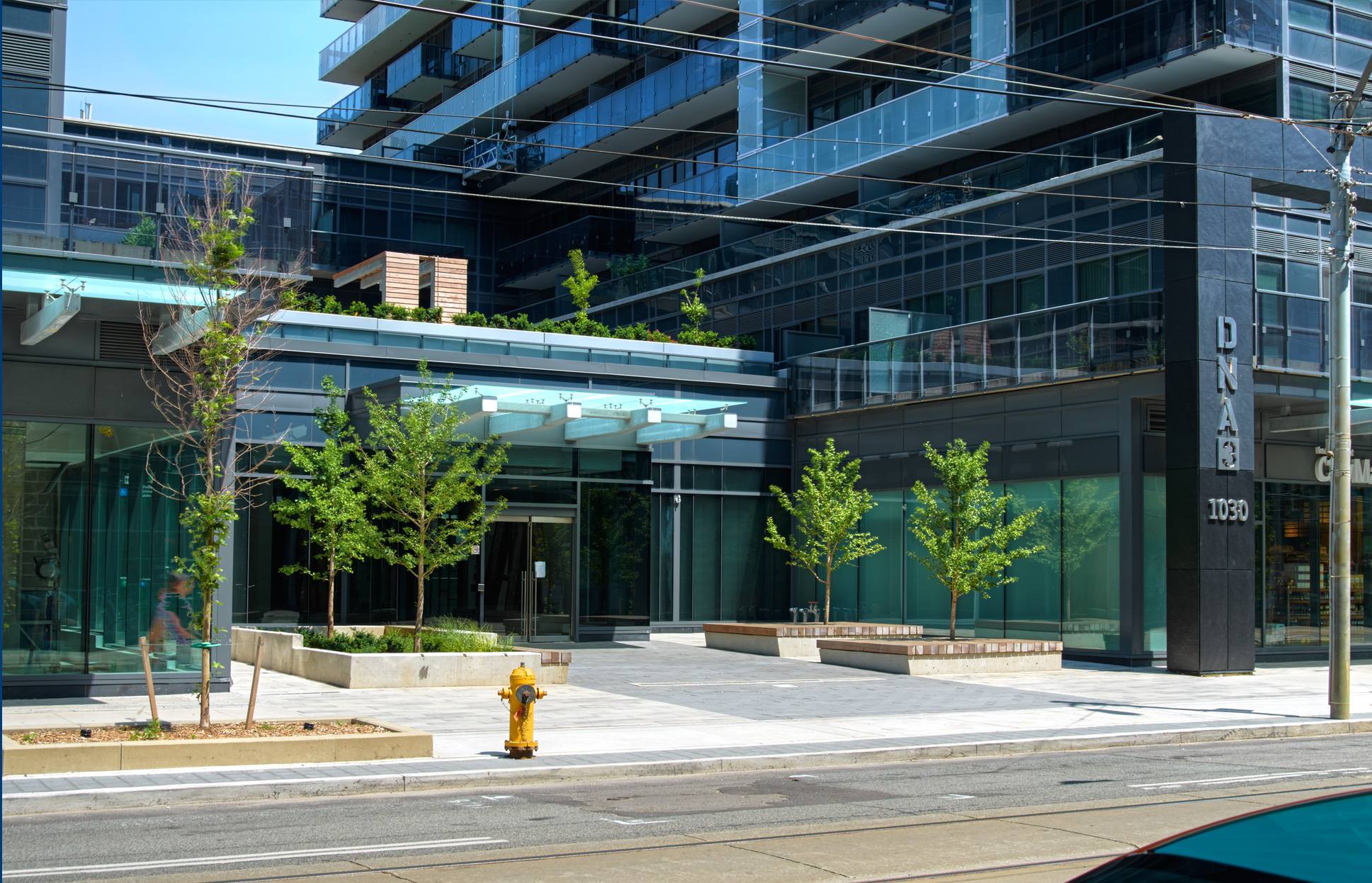 This 742,000 sf, 600-unit project includes 2 buildings joined by a retail podium, underground parking, three courtyards, rooftop terraces, and an all glass exterior facade. Units comprise nine foot ceilings, high-end finishes and spacious balconies.