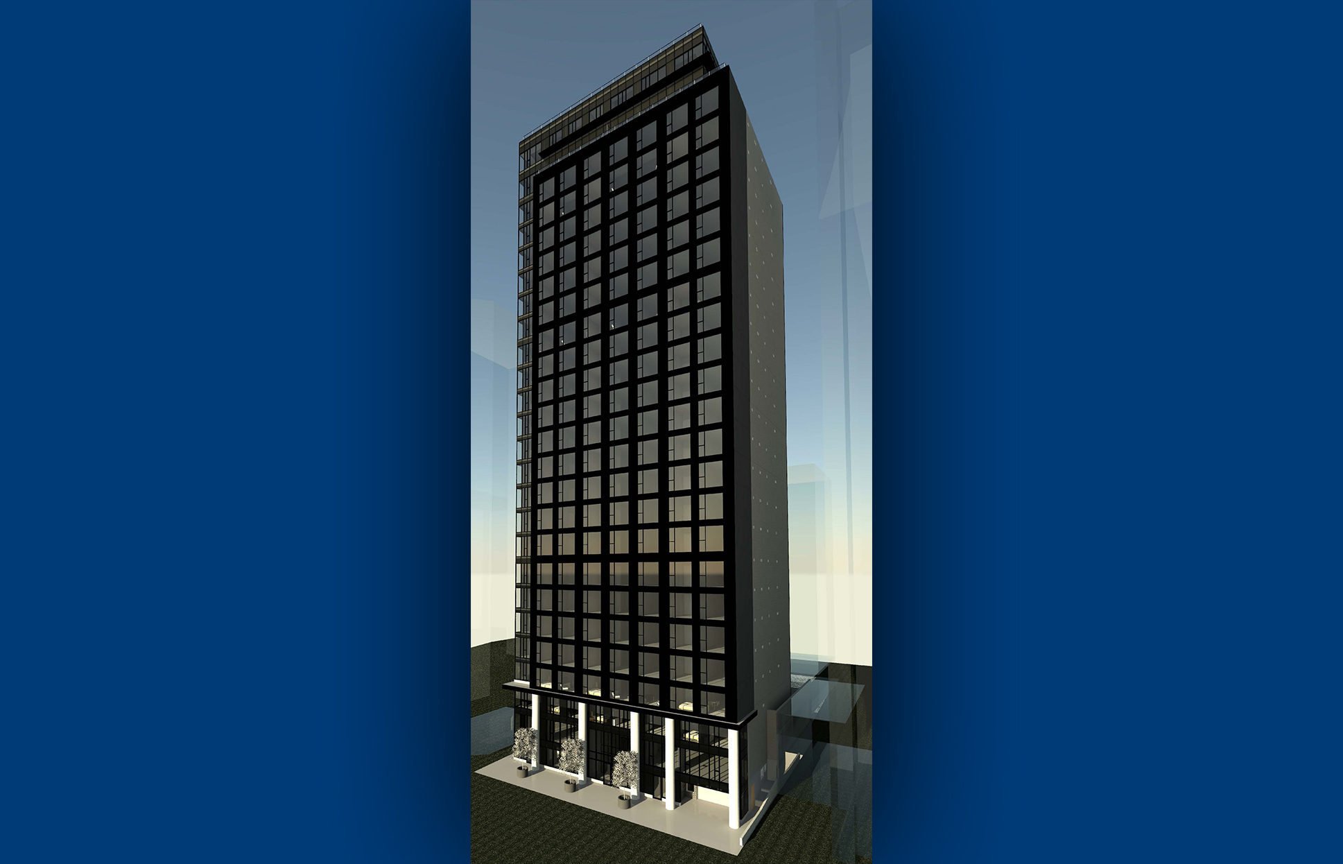 project is a 25 storey condominium tower being built in the business district of the Ottawa downtown core. The project consists of 194 suites, and a 2 floor underground parking garage. With a mixture of window wall and a precast