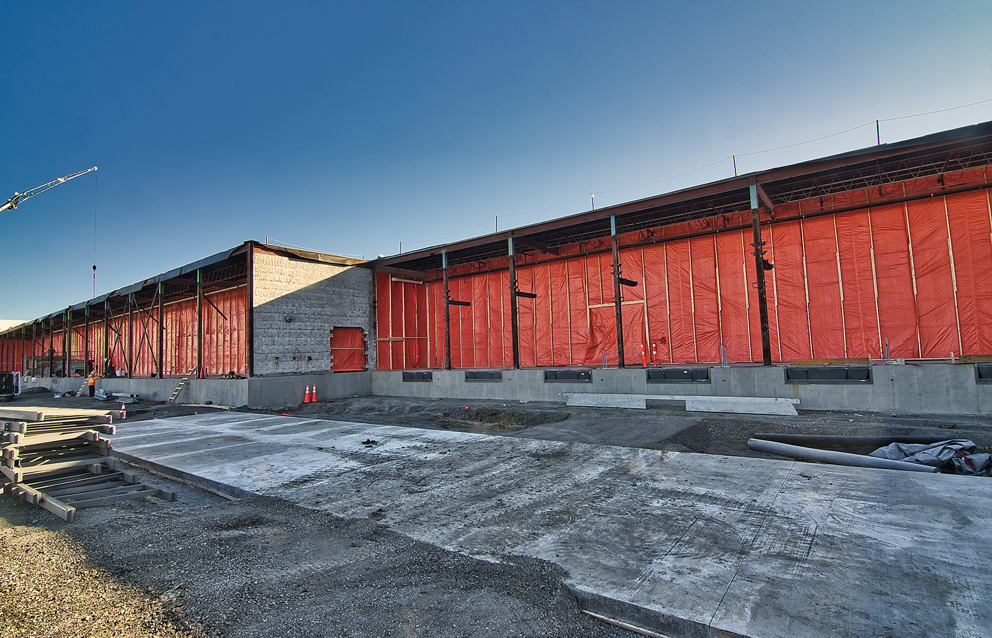 warehouse facility to a modernized refrigerated / freezer distribution center complete with exterior facades being re-built to meet the requirements of a refrigerated environment and upgrades to shipping / receiving activities. The exterior truck parking / loading dock facilities are being fully revamped to suit the conversion from a stagnant warehouse facility to a modern an effective shipping / receiving operation. The project includes the full removal and replacement of the rear building structure and foundation to suit the revised vocation of the building. The existing roofing system is being replaced to meet the new needs of the