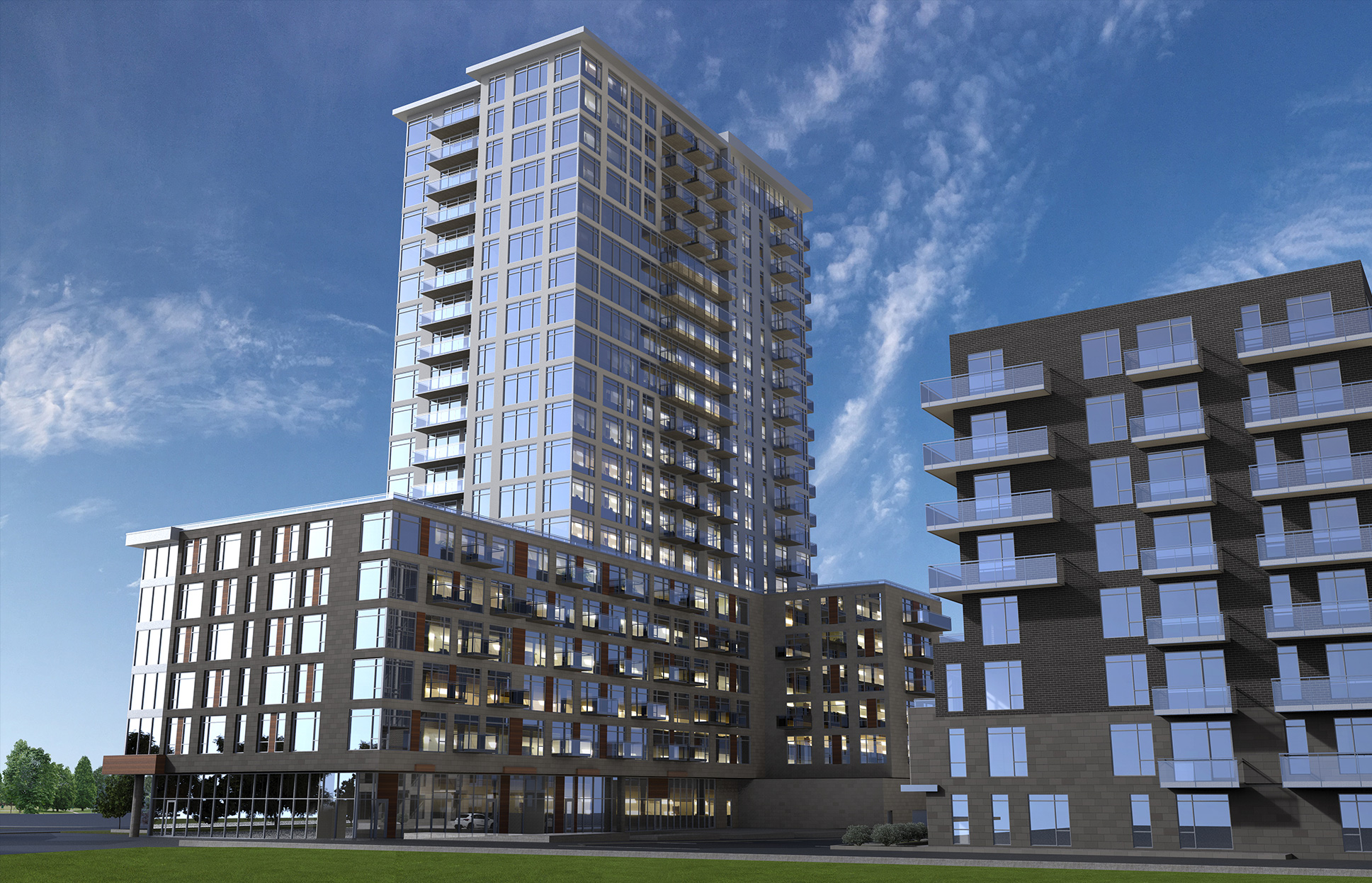 The first tower boasts 20 storey, 201,000 sq. ft., 272 units, with 2