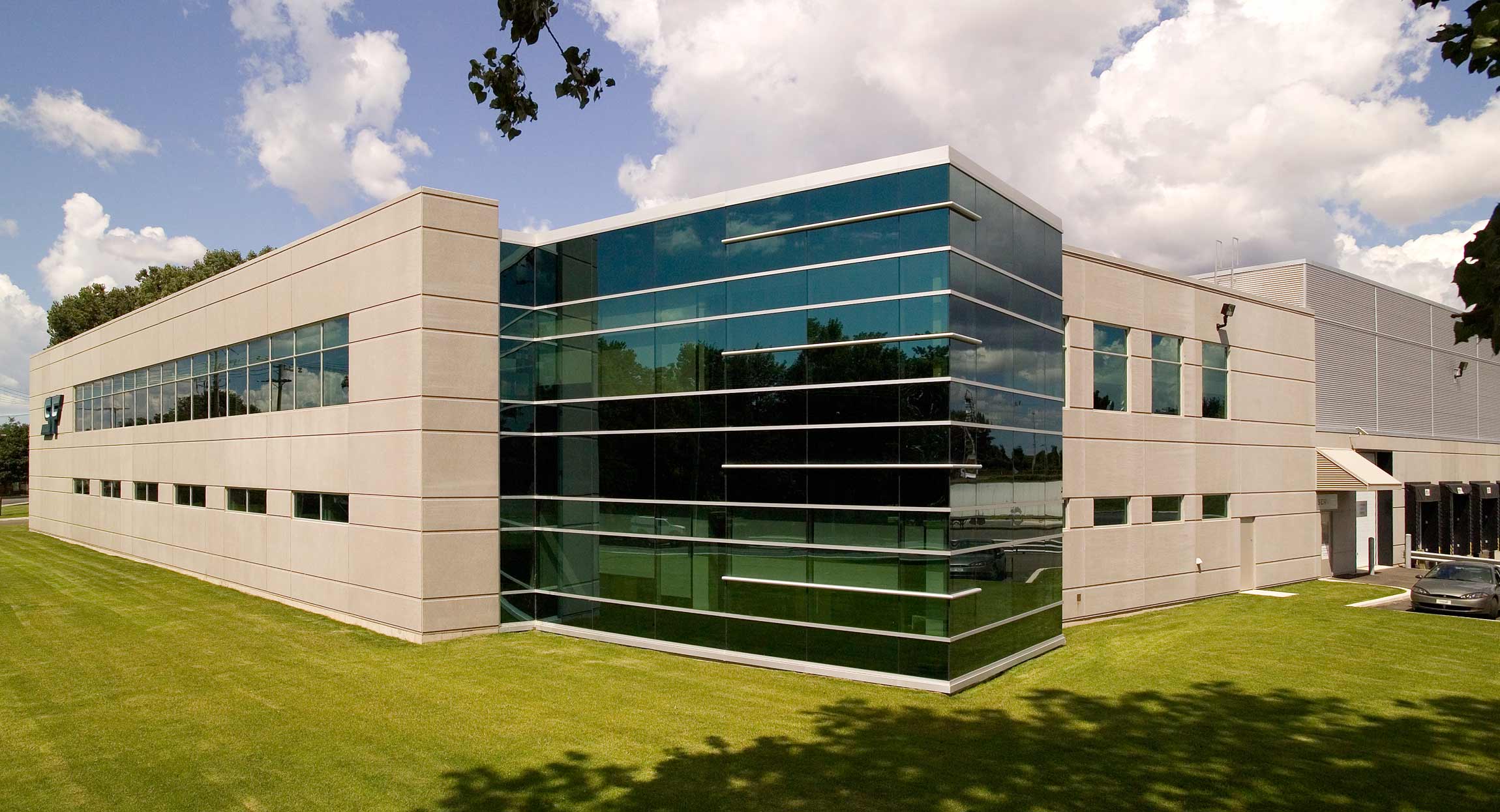De nouveaux bureaux, un centre de distribution et de production pour un distributeur d’équipement audio haut de gamme. Le bâtiment comprend un entrepôt à humidité contrôlée et une zone pour le stockage et la réparation de guitares, des aires de production, 20 000 pi. ca. de bureaux et deux étages de salles d’exposition acoustiques pour la démonstration de haut-parleurs et d’amplificateurs haut de gamme.